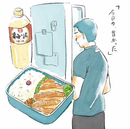 明日もまた、日の出みりんの照り焼きにしようかな。また同じのいれた!って怒られるかな?