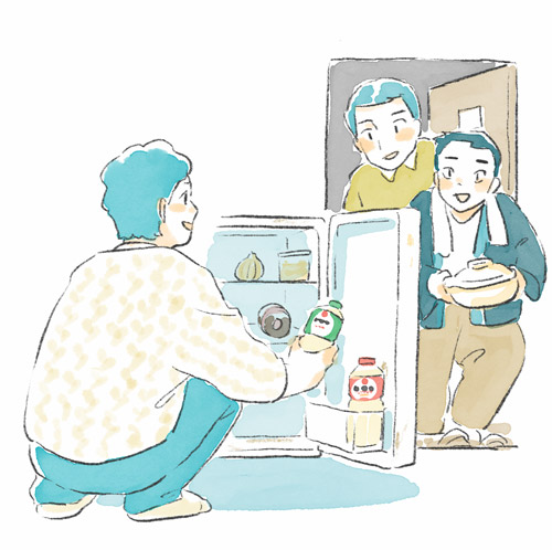 高校を卒業し、大学に通うため京都に下宿することになりました。そこで母親の勧めで初めて買いそろえた調味料が、地元で馴染みある日の出「新味料」と「料理酒」、ヒガシマルの淡口しょうゆでした。ワンドアの小型冷蔵庫には、いつもこの3種類がありました。これらを持って、下宿の土間にあった共同の炊事場で自炊をしたのを思い出します。
