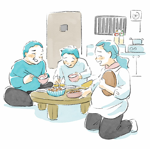 悪そうにドンブリを差し出す父さんと兄さん。追加でイカや練り物、玉ねぎ、根菜、あるもの全部で同じ味つけだったが、それも全部食べてくれた。驚くくらい食べてくれた。私は嬉しかった。
