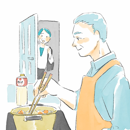 料理の最後の段階でみりんを入れ、じっくり煮込んだ。味見をする。「この味、この味だ」。なぜか、懐かしい味に再会したようだった。帰宅した妻が、「うわー、美味しそう」と言って、たくさん食べてくれた。「これからも作ってね」と言った。「一事が万事だね」と妻に言って、二人で笑った。内心、料理をするのも悪くないと思った。