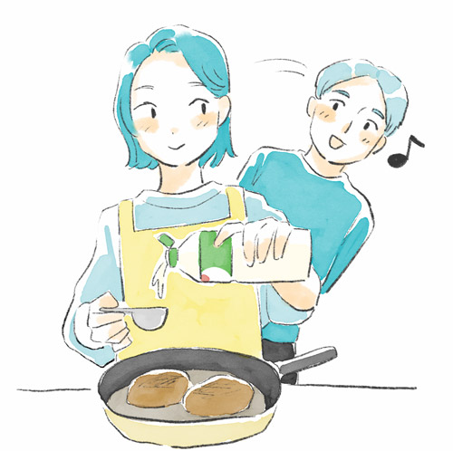 ハンバーグを作った時のことです。3度目くらいの頃でしょうか、彼から「やっぱりこのハンバーグ、すごくジューシーで柔らかくて美味しい。親の作るハンバーグよりも好き」と褒めてもらいました。