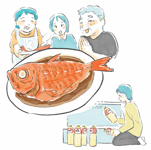 祖母がつくる、みりんを使った料理は、あの金目鯛の煮付けだろう……。その時すでに他界していた祖父が、煮付けを喜び、大きな目玉まで取り出して食べていた記憶が一気に蘇りました。また作らなくちゃ、みりんを切らしてはダメだわ…そう思って度々買っていたのかな、と思って泣いてしまいました。