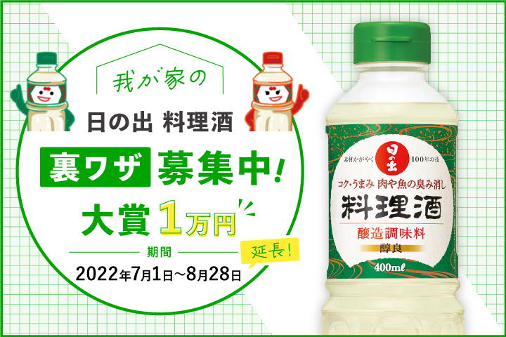※ レシピに使用する料理酒は、日の出料理酒に限らず、どの料理酒でもご応募いただけます。
