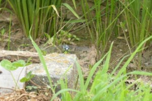 苗も生長していますが、田んぼ周辺に生息する生き物たちも成長しており、作業中にトンボが顔を見せてくれました。