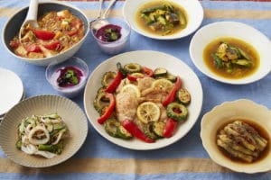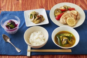 夏野菜をふんだんに使ったこちらの献立では、メイン料理に