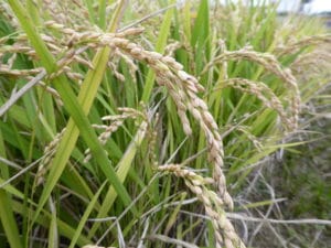 9月中旬頃は穂の色がまだまだ青々としていましたが、9月下旬頃にもなると収穫間近の色に変わってきました。