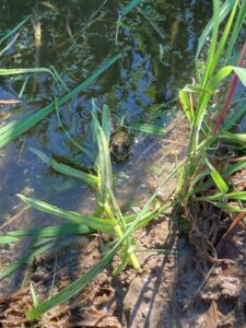 草抜き終了後に1匹のカエルが姿を見せてくれました。
