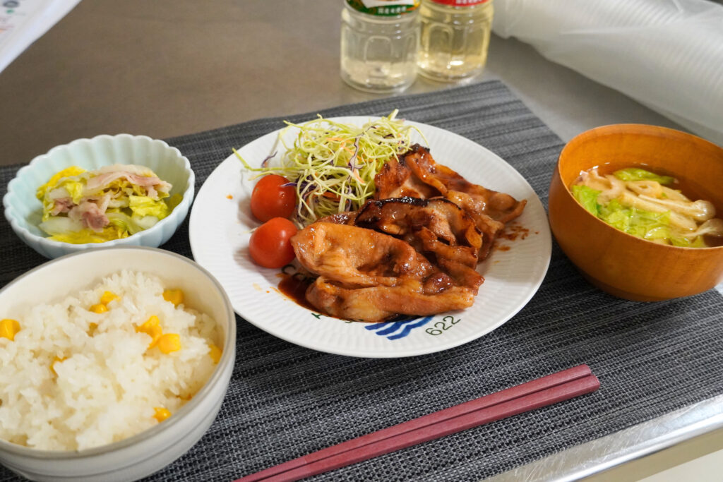 そんな新入寮生のために、「日の出 調味料」の使い方と簡単で栄養満点な料理の作り方を学んでもらいました。