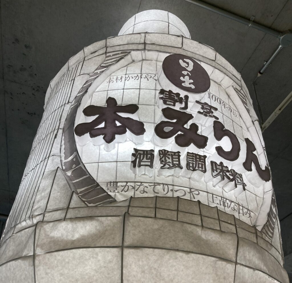 キャンパスに足を踏み入れると目に飛び込んできたのは、高さ約4メートルにもなる巨大な「日の出 割烹本みりん」!