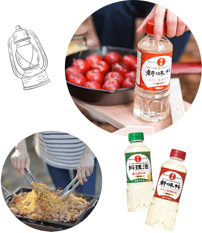 キャンプのお供にお勧めしたい調味料は「日の出 新味料」と「日の出 料理酒」!