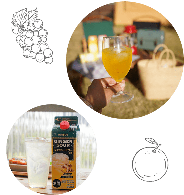 「HiNODEのお酒」では国産ブランド素材を使ったこだわりのお酒をご用意しています。美味しいお酒とともに、ココロを満たす大切な時間をお楽しみください。