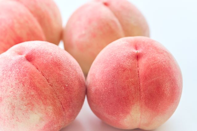 山梨県の恵まれた地形と気候で育った白桃は糖度が高く、美しい色合いになるのが特徴です。
